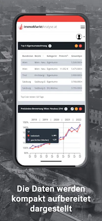 ImmoMarktAnalyse is a modern and structured platform that provides valid data on the Austrian real estate market and clear real estate market analyses. This according to nationally and internationally recognized rules.