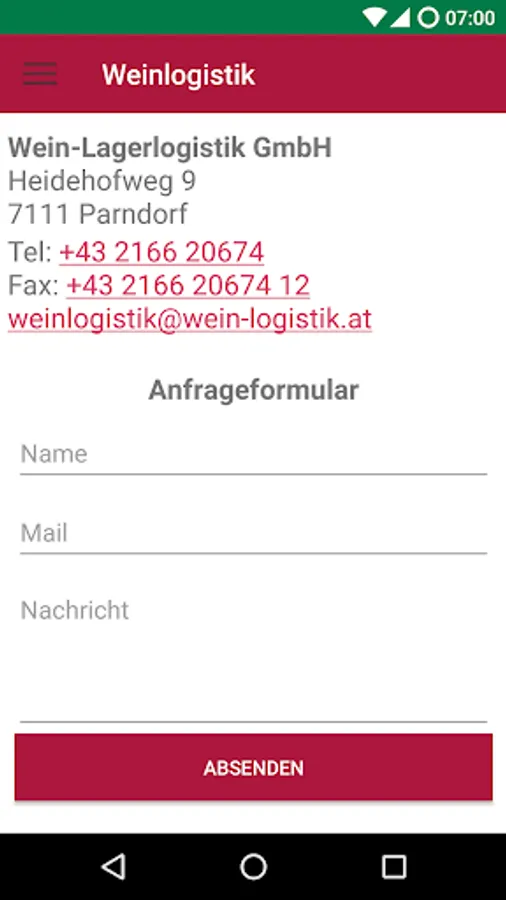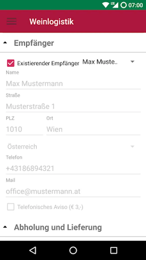 With wine logistics app to send transport orders to the Wine Warehouse Logistics GmbH in Parndorf, which takes care of the other shipping your wines.