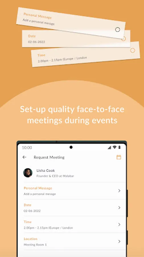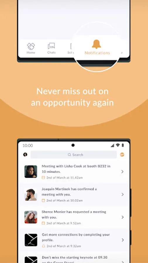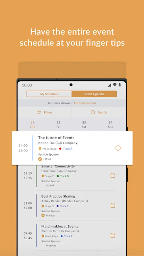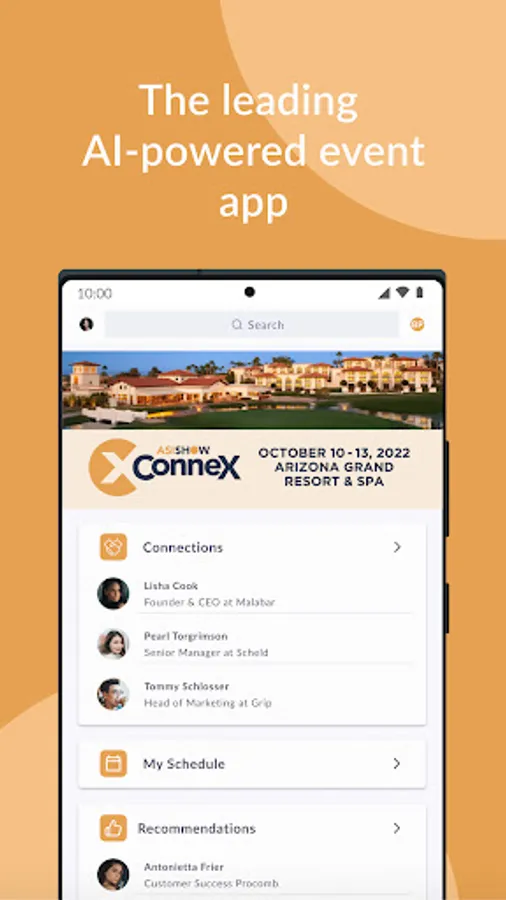 show. It includes attendee profiles, daily agendas, personal schedules and