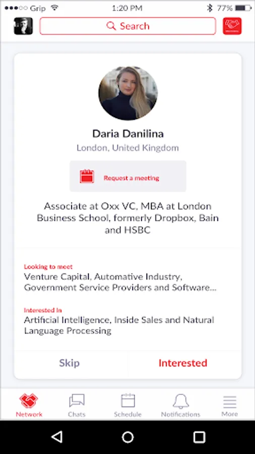 The self-learning matchmaking app selects the most relevant participants for you in order to start networking, arrange appointments and get to know trade fair participants. Every time you use the app, your contact recommendations will get more and more precise because of our self-learning system.