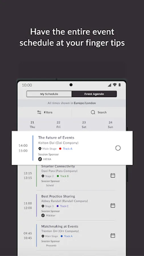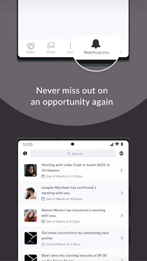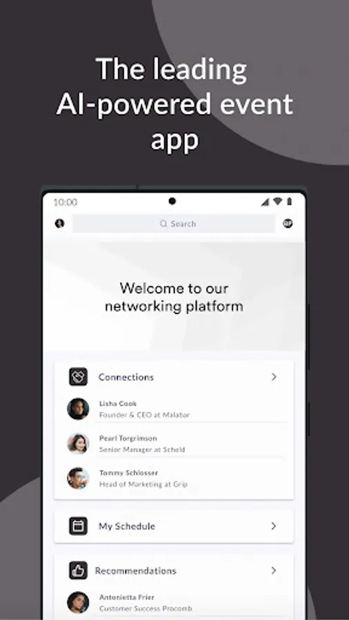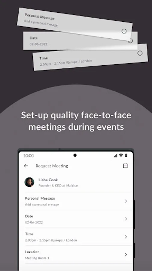 The app uses AI matchmaking technology to help you create face-to-face meetings at our live events, as well as high-quality virtual meetings all year round.