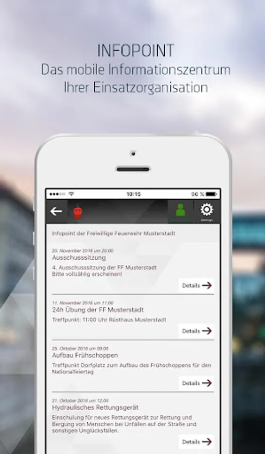 - Info Point for displaying relevant information on the organization site (. Eg fire department)