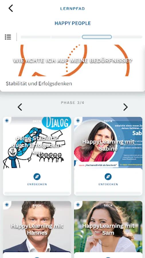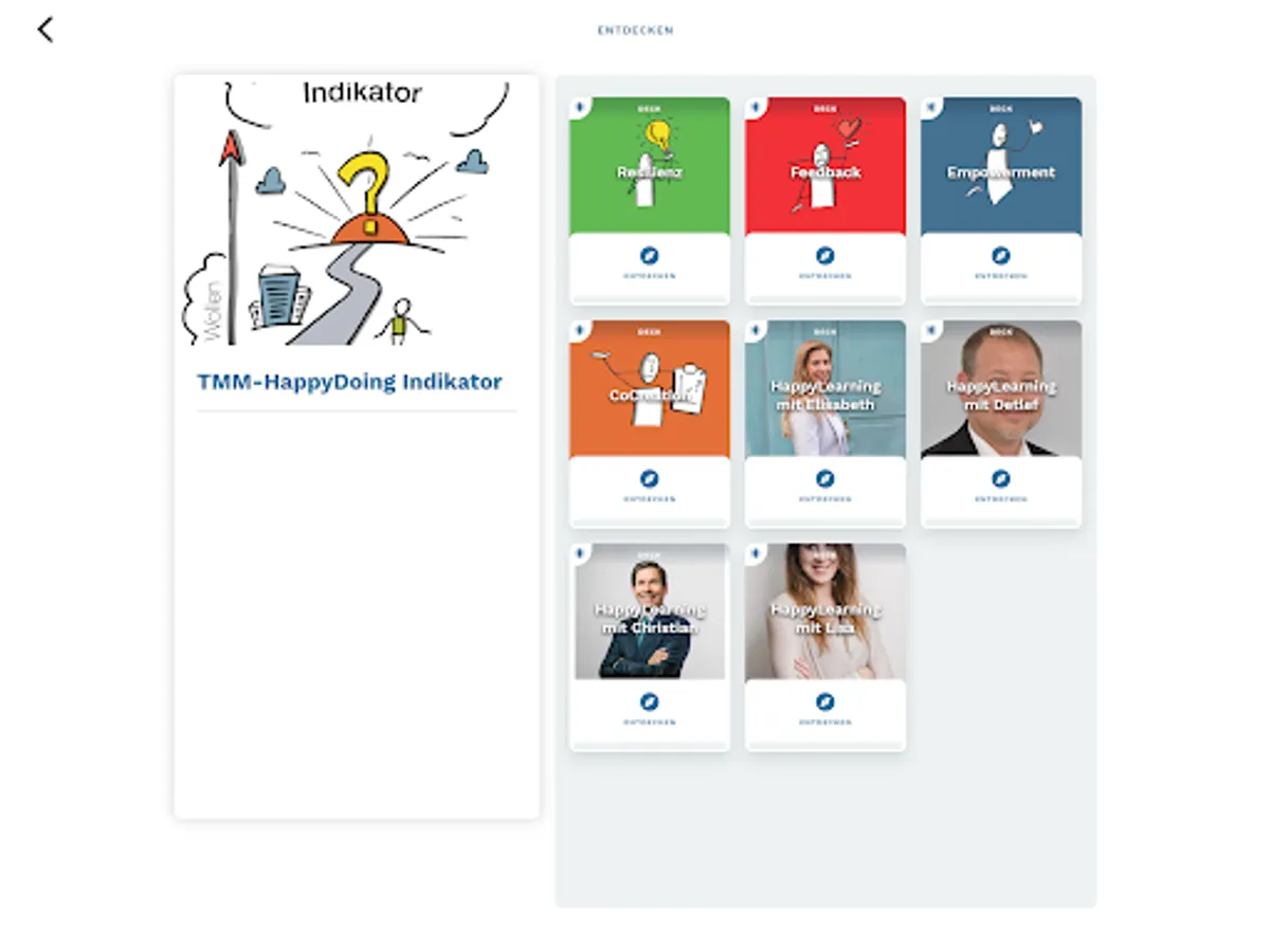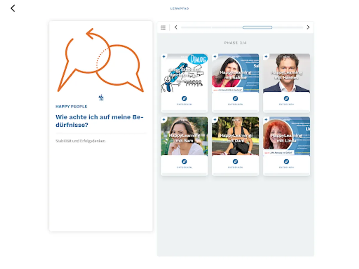 You have access to HappyTalks with experts from various fields - e.g. Resilience, communication, high sensitivity, brain research, fitness, relaxation, breathing. New knowledge is added here regularly!