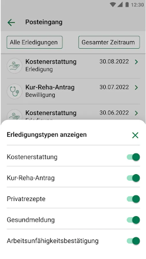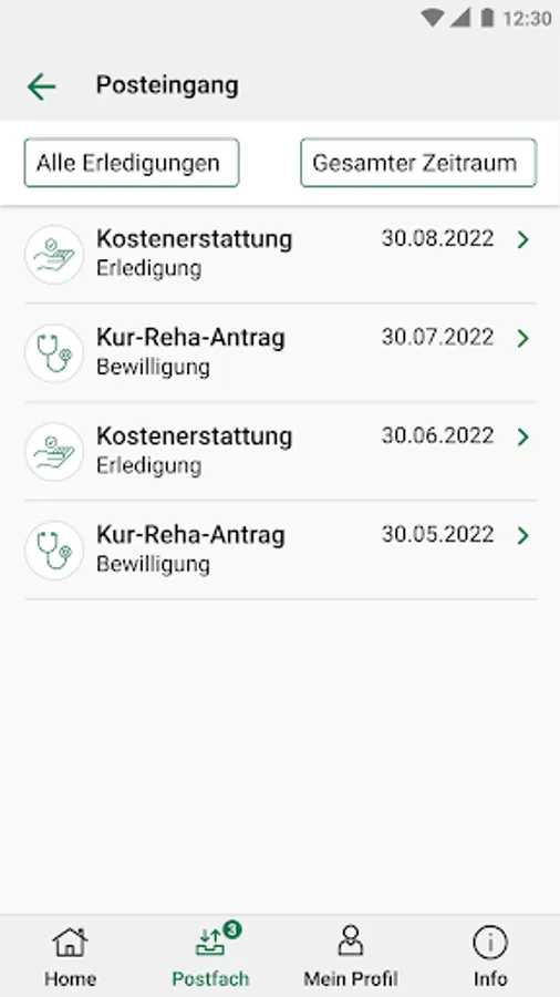 In the app, you can easily see which costs the insurance has covered for you in the past few years.