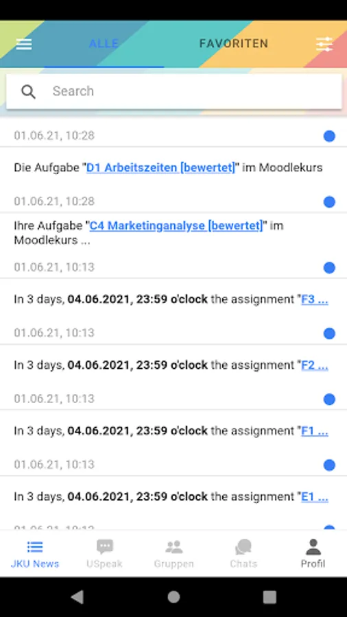 The app not only offers the latest real-time news on grades, courses, Moodle tests and assignments. You can also access the study manual (including grades and evaluation). Your personal assistant always keeps an eye on your study progress and reminds you in good time when an important appointment is approaching, as well as about your daily courses. With the news system you are always up to date.