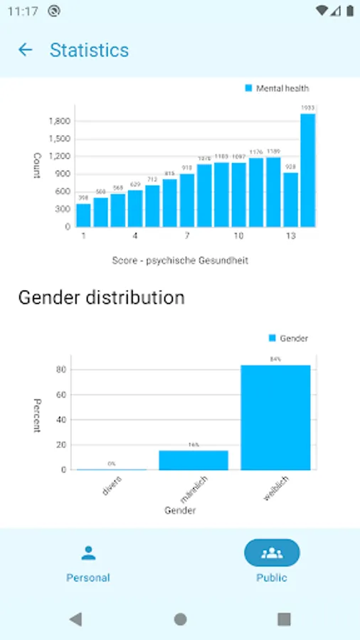 Researcher can set up complex charts that will be automatically calculated out of participants' data. These statistics can be either personalised to the participants or calculated out of all participants' data.