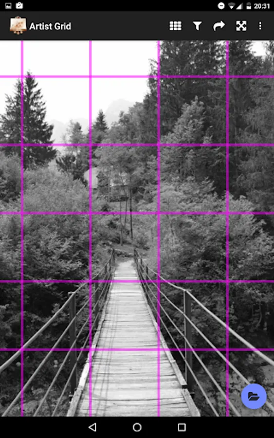 Often artists need a grid for existing images to the proportions and perspective right. This small app does exactly that. A simple and free app for putting a grid on an existing photo. Grid size in terms of rows and columns can be set freely or based on presets. Line thickness can be set in pixels, line color can be select from primary colors, and line transparency can be configured. The image with the grid can be exported to a file or shared to other Android apps. Additionally, you can switch to a comic like view of the image highlighting the edges and reducing the colors.