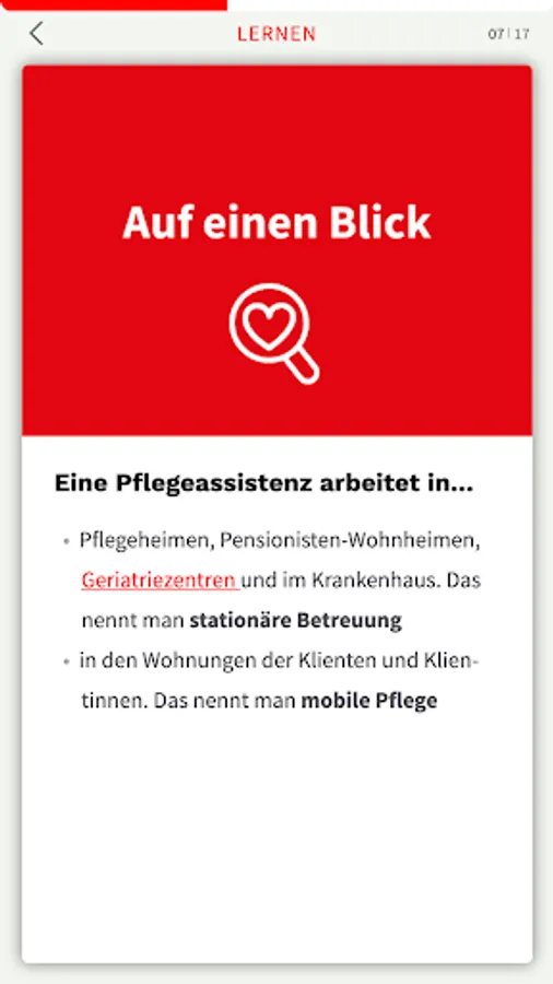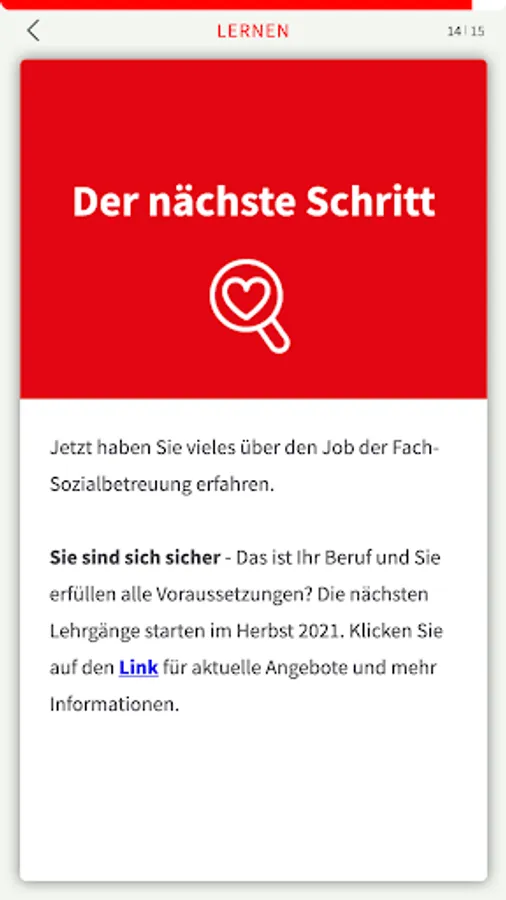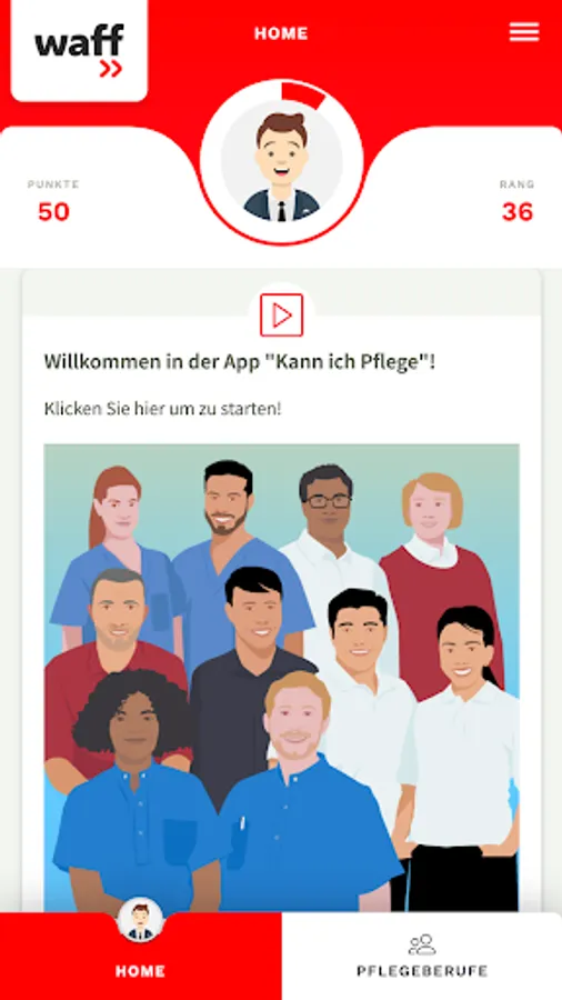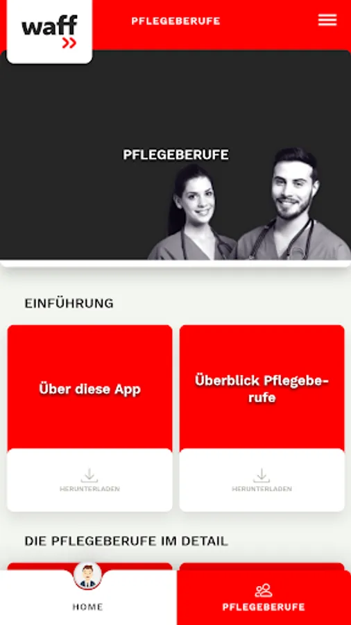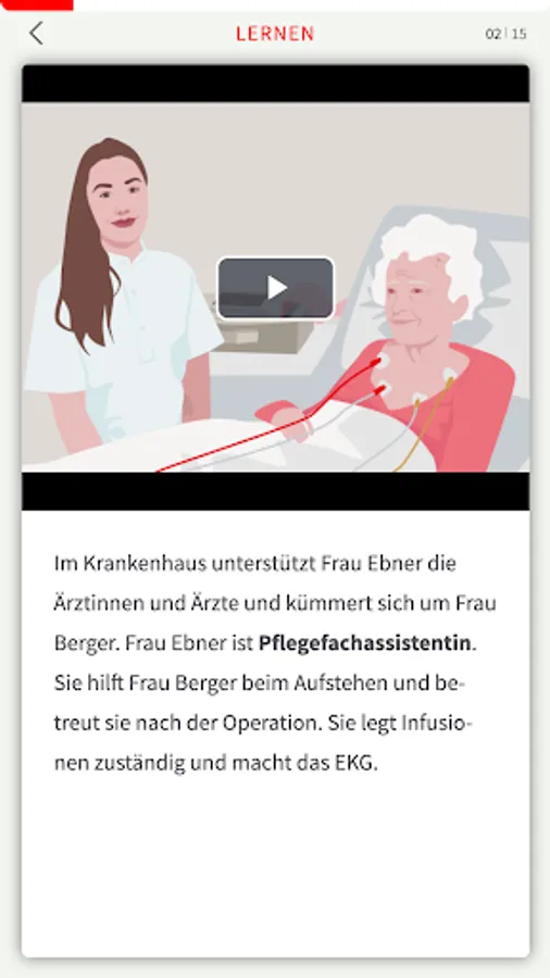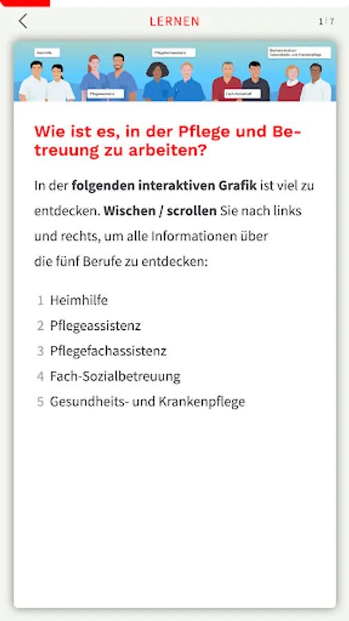 The app is playful and interactive and offers a good insight into the different professions. Videos from practice also help here.