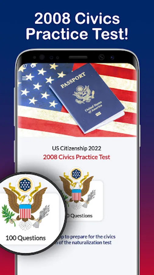 The 2008 Civics practice test is a study app to help you test your knowledge of U.S. history and government. Use this app in English to prepare for the civics portion of the naturalization test.