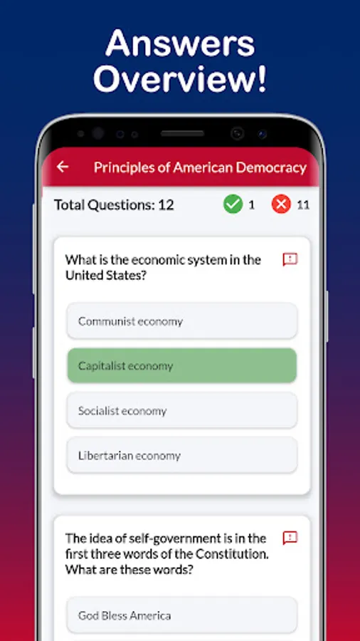 The actual civics test is NOT a multiple choice test. During your citizenship interview, you will be asked up to 10 questions from the list of 100 questions. You must answer 6 out of 10 questions correctly to pass the civics portion of the citizenship test. Nobody knows which questions you will be asked so it is essential to learn all 100 questions and answers.