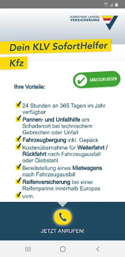 There are of course no costs for downloading and using the app. However, the prerequisite for the unrestricted use of all features is the conclusion of KLV SofortHelfers from the Kärntner Landesversicherung.