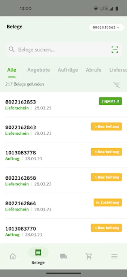 - Search through all documents such as delivery notes, orders or invoices