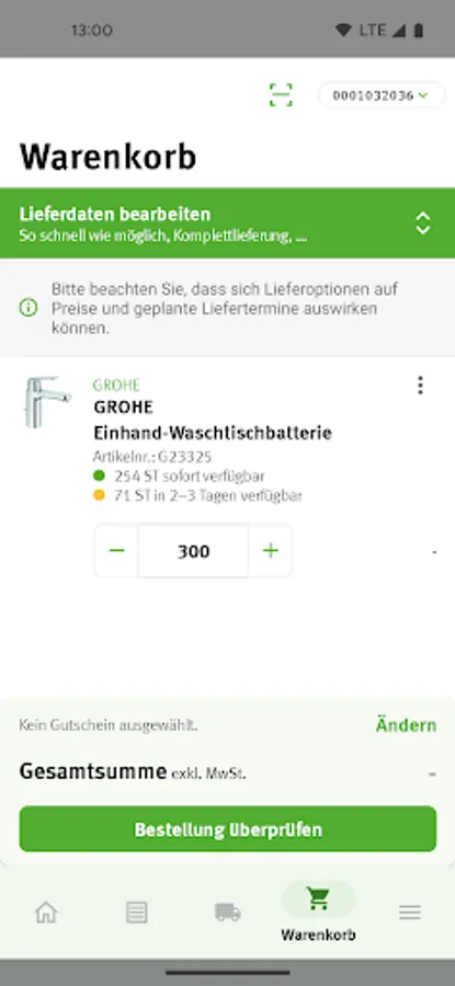 - Management of several shopping carts (e.g. for different construction sites)