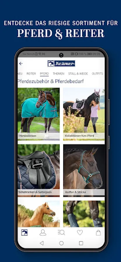 At Kramer Equestrian you will find a huge selection of riding clothing, riding shoes and riding boots, accessories, protective equipment as well as horse blankets, horse feed, saddle pads, leather goods and much more.