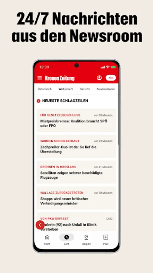 24/7 live news from the Kronen Zeitung newsroom with the fast krone.at app