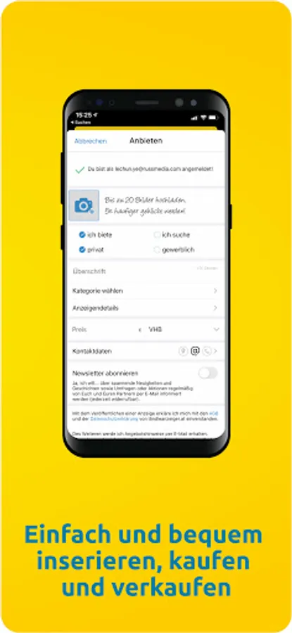 Du willst einen Artikel verkaufen? Jetzt ganz einfach und kostenlos inserieren: Lade einfach ein Artikelbild, einen Beschreibungstext und den Preis in die App und fertig ist deine Kleinanzeige auf ländleanzeiger.at! Poste deinen Artikel auf Facebook, damit du ihn noch schneller verkaufst. Tipp: Du kannst deine Anzeige jederzeit bearbeiten oder löschen.