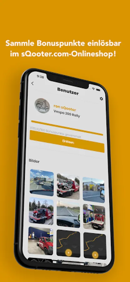 If you record publicly, your journeys will be shown on an online live map so that other drivers can interact with you. This way you collect bonus points for every kilometer you drive, which you can redeem in the Sqooter shop. If you record privately, you can also earn your points by sharing a completed route on social media.