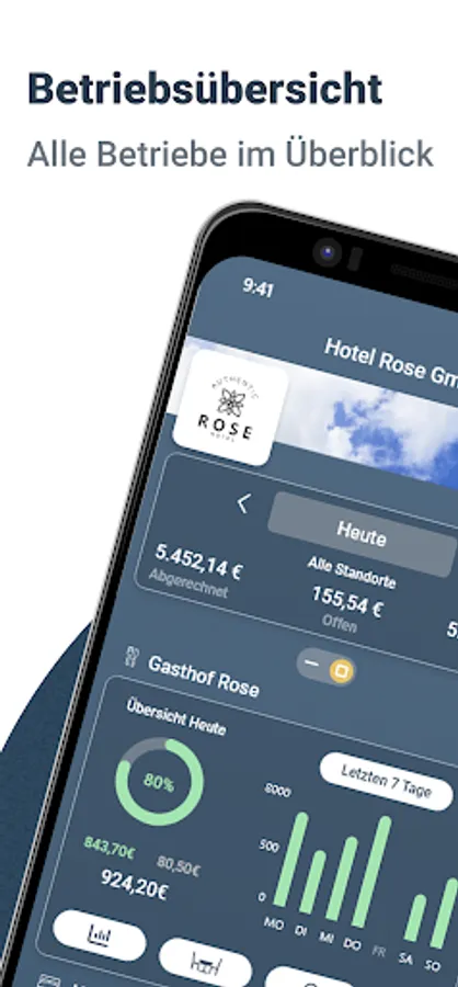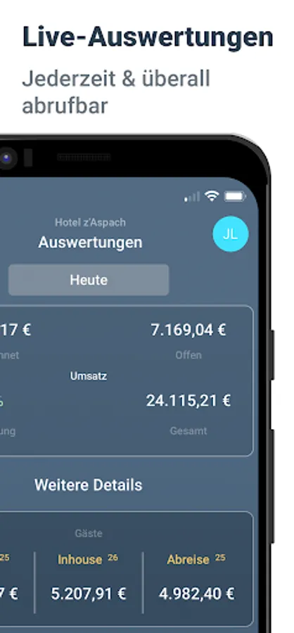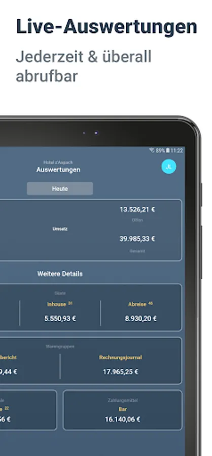 No matter when and where, with our Lipp app you always have an overview of all the numbers of the hotel and cash register software. A clear presentation of sales, users, product groups, etc. gives you a quick overview.