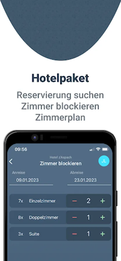 Enter the period, room and contact details, block the room and it is already available in the hotel software for further processing.