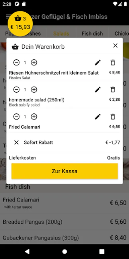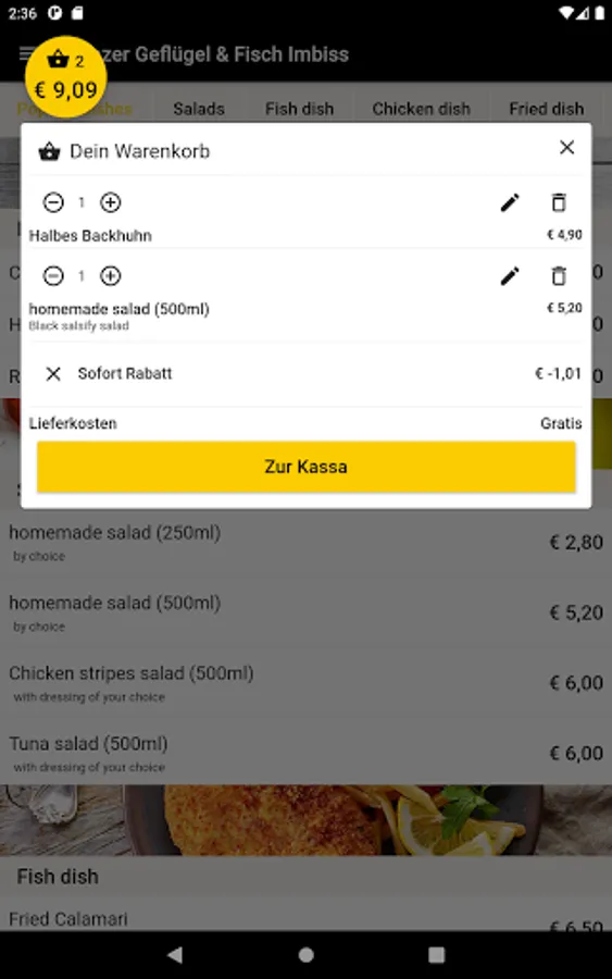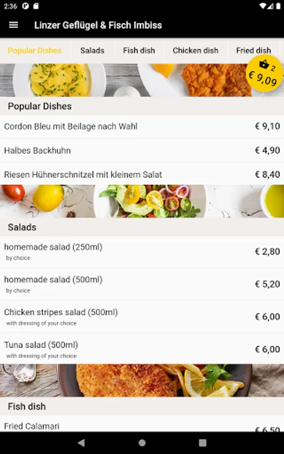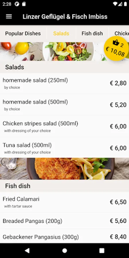 Linzer Geflügel & Fisch Imbiss now also delivers to your home. Order fish dish, chicken dish, salads, drinks and desserts conveniently and easily online. Now simply order food online via the web or via the app. Choose your favorite food, pay easily & securely and food will be delivered! Simply order food and have it delivered for free! Pay in cash or online. Great offers. Excellent service. Fast delivery.