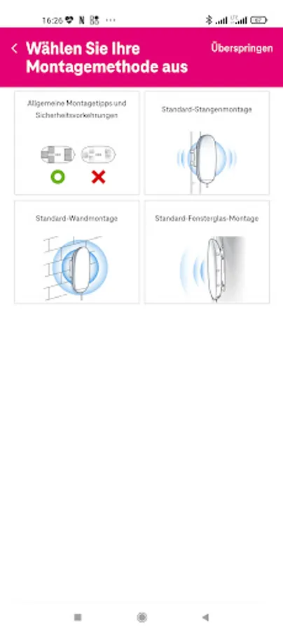 The Magenta 5G Box Outdoor app offers a quick way to install your 5G Box Outdoor with your mobile device (smartphone, tablet) and also helps you to find the optimal installation location for your 5G Box Outdoor.