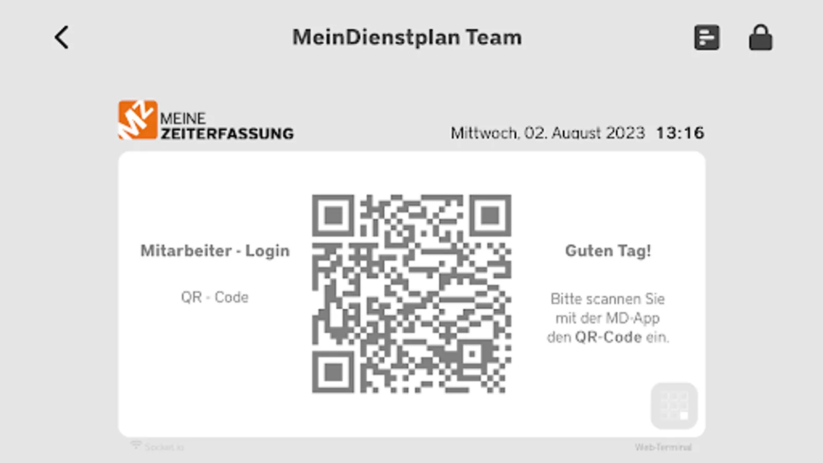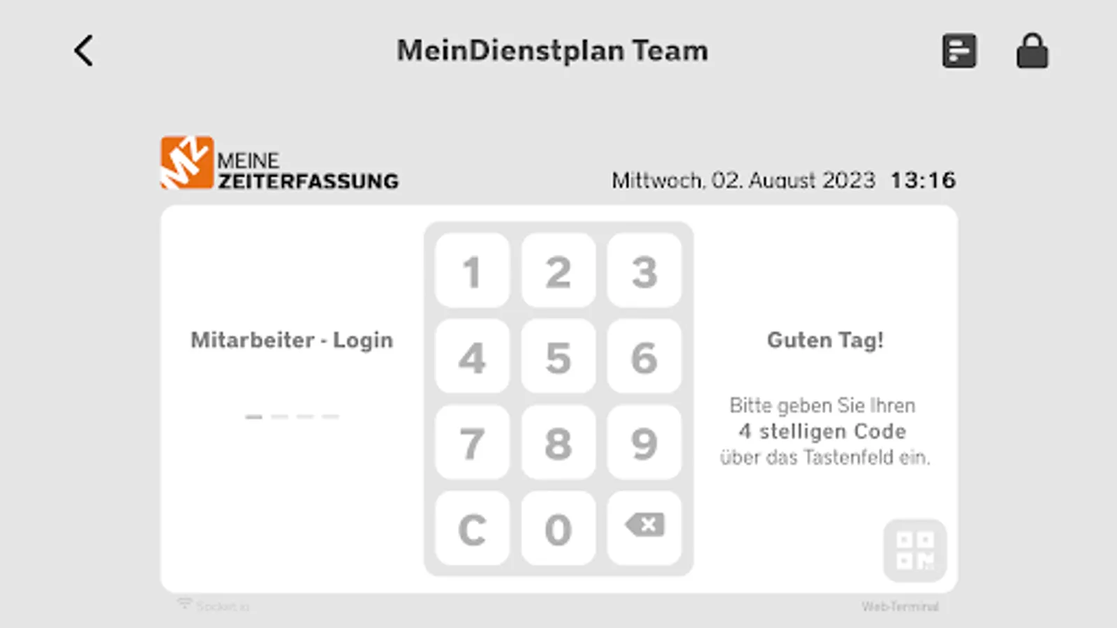 Does your company use MySchedule and as a supervisor do you have the right to unlock your stamp terminal for MyTime Recording? Then use the MeineTime Recording app to open a stamp terminal for all stores to which you have access at any time, so that your employees can record their working hours.