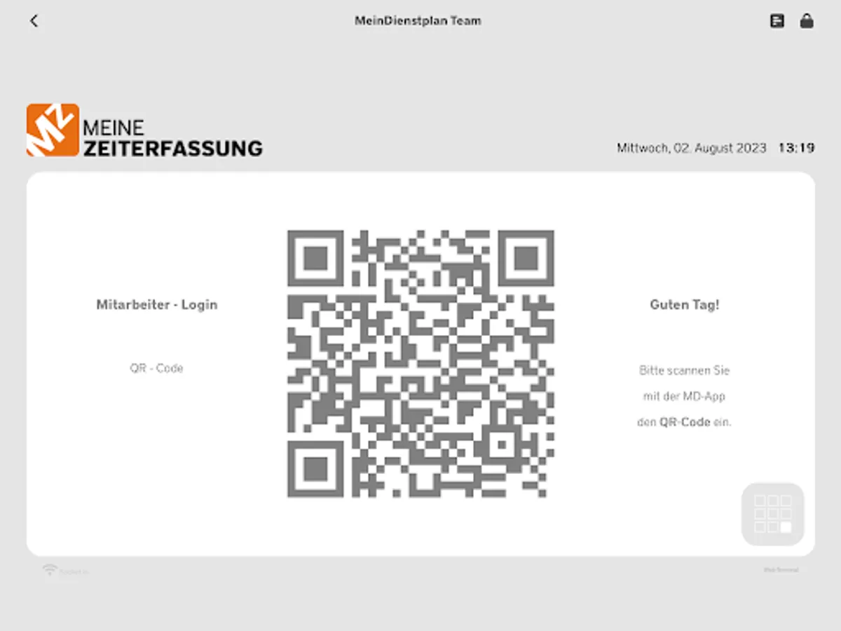 That's it, log in with a user with the necessary authorizations in the MeineZeitführung app and open the stamp terminal of a store with one click. And the best for last: it is certainly not optimal on small displays, but we make sure that the terminal can also be used on smartphones. Say goodbye to missing stamp times due to defective stamp terminals, incorrectly wired network lines or internet failure in the company - with the My Time Recording app you always have a terminal ready in no time at all.