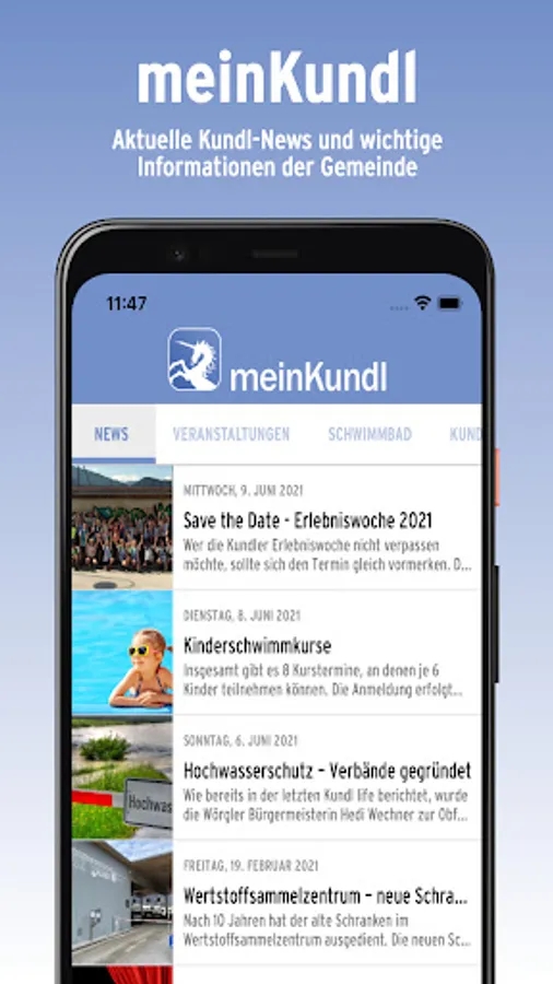 You don't want to miss any important news from the Kundl community, but you don't have enough time to find out more daily on the community website or on Facebook? Then the meinKundl APP is just right for you!