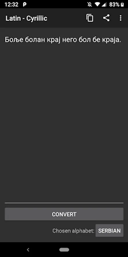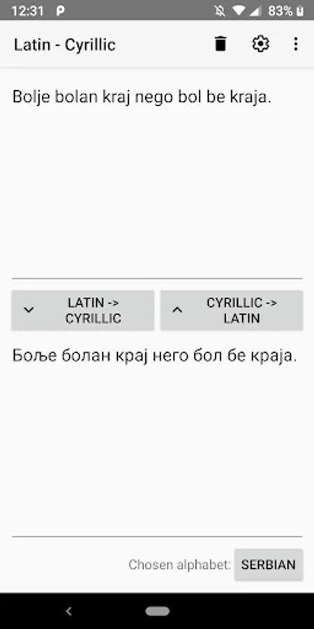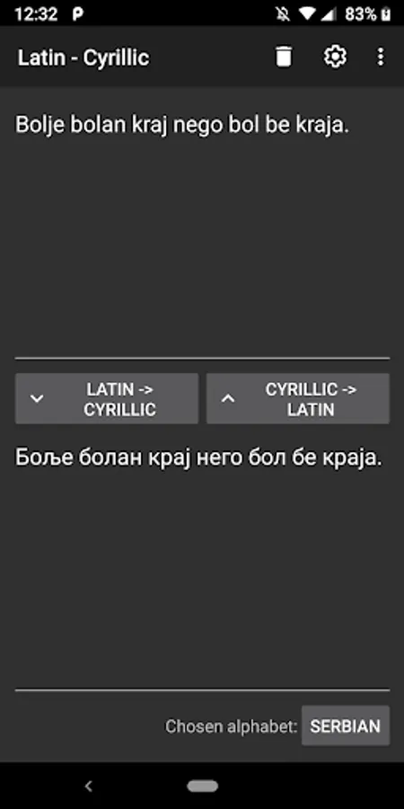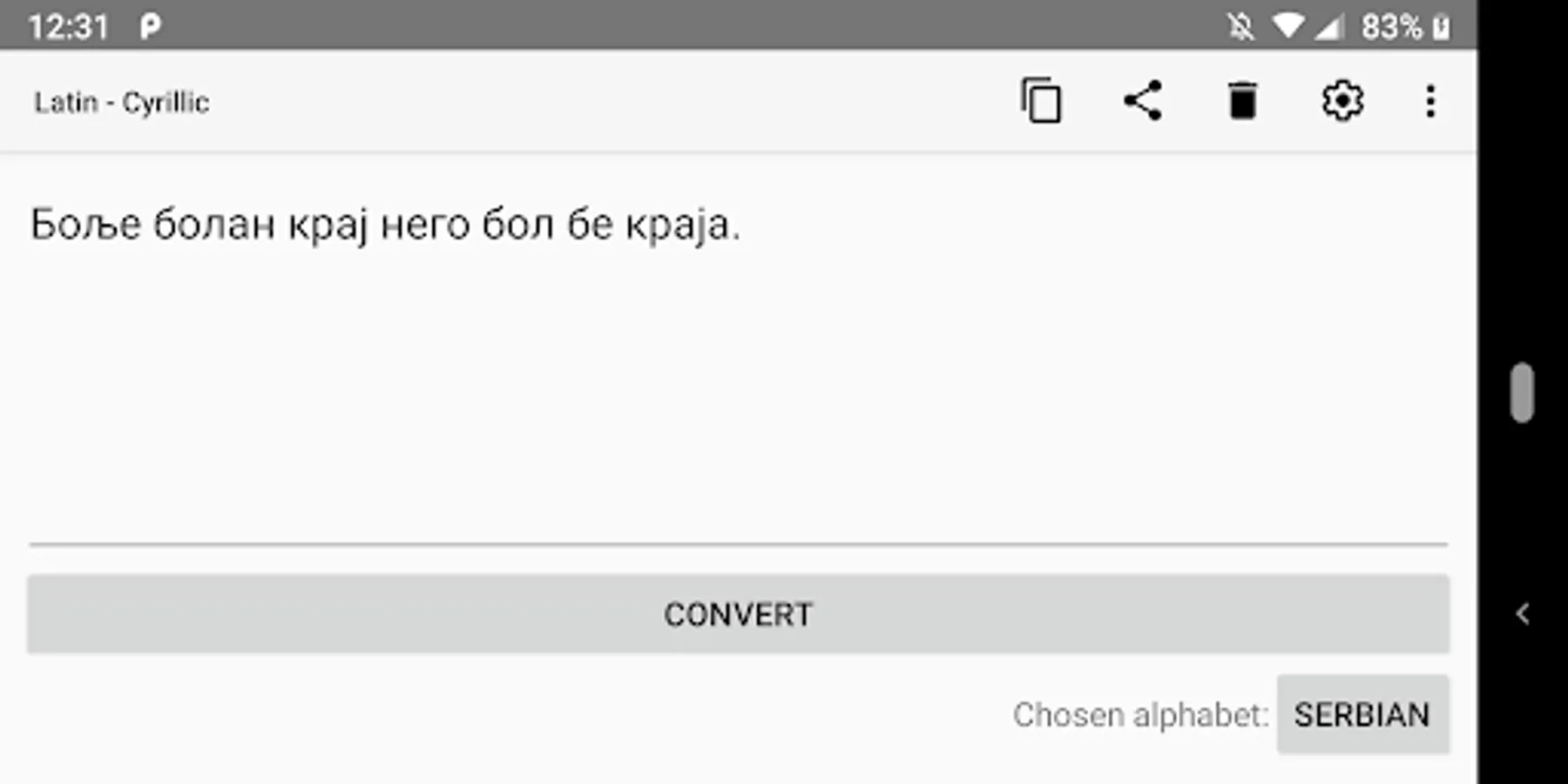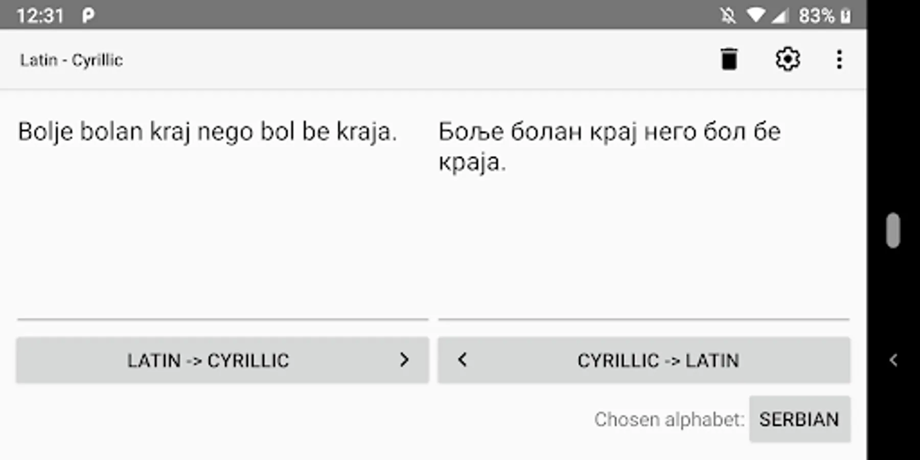This Latin to Cyrillic (Latinica to Ћирилица) transliterator converts a text based on the Latin-script to a text based on the Cyrillic script and the other way around. Supports the Serbian Azbuka, Russian (ISO 9:1995) and 5 more alphabets. But the conversion table is also extendable/completely customizable with the characters of your choice