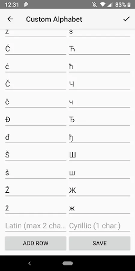 Includes the following alphabets for Latin to Cyrillic and Cyrillic to Latin conversion: