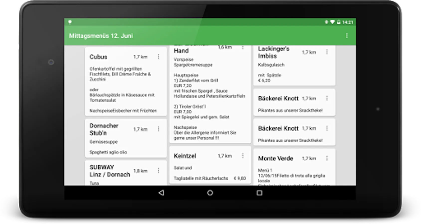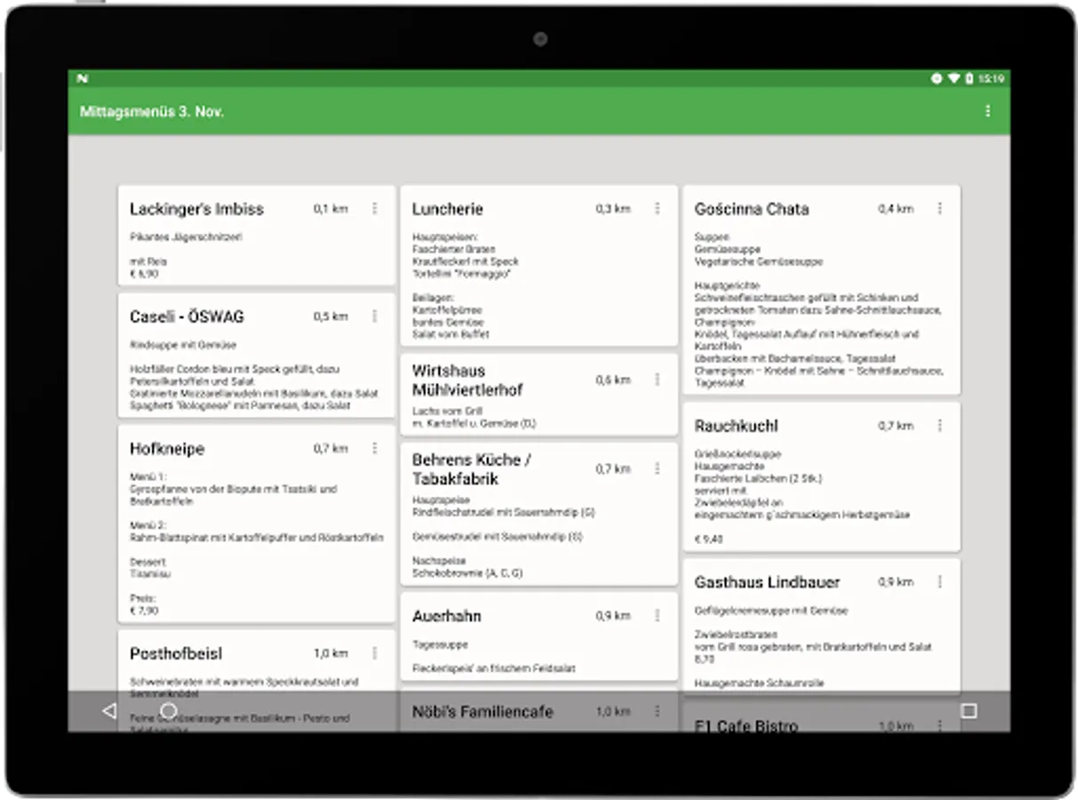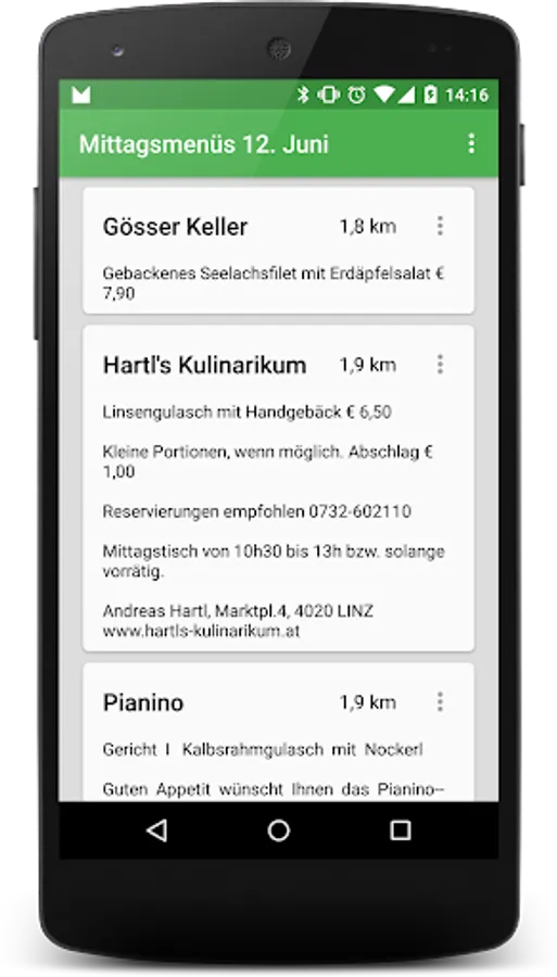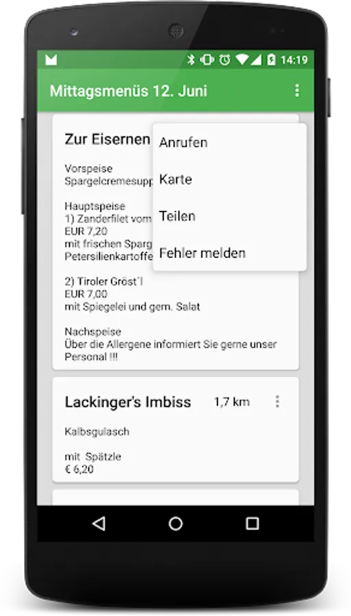 The app provides a quick overview of lunch menus around.