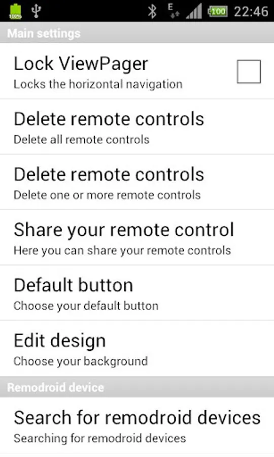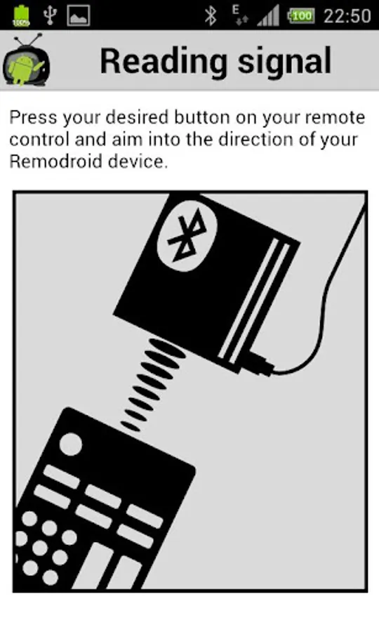 Remodroid is an Android application that gives you the opportunity to control your infrared multimedia devices remotely with your Smartphone. To control a device with this App you will need to learn the signal from an existing remote control. Due to the fact that modern Smartphones don't have an infrared interface you will have to use the external Hardware mentioned above.