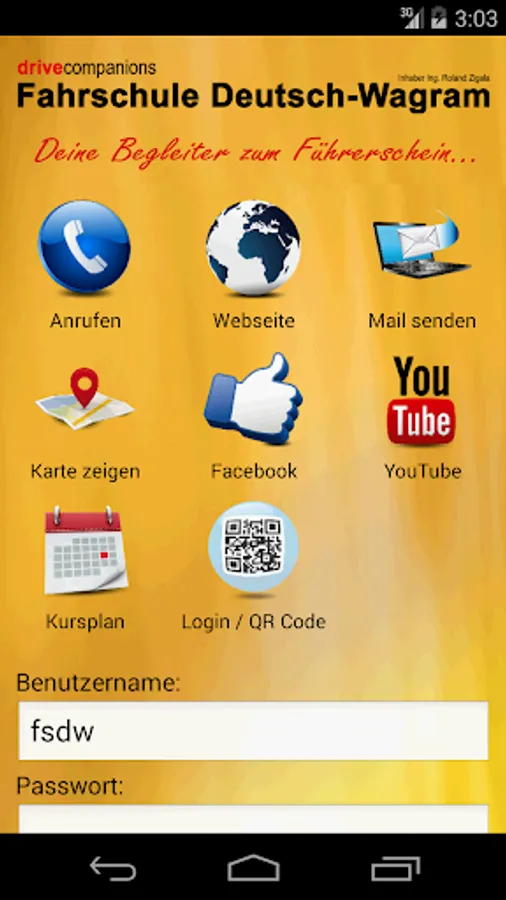 Use the app to the driving school German Wagram to come into contact with your driving school.