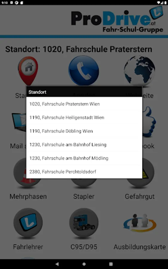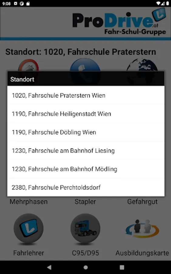Use the app the ProDrive Driving Schools to come into contact with your driving school in your area.