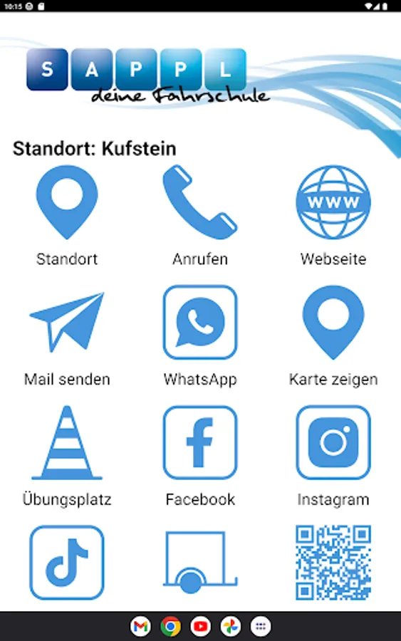 Use the driving school Sappl app to the driving school Sappl Kufstein, St. Johann, Hall, Wattens and Wörgl to stay in touch, to organize your driver education online to get a one-click access to online coaches and many more features to quickly your driver's license to come.