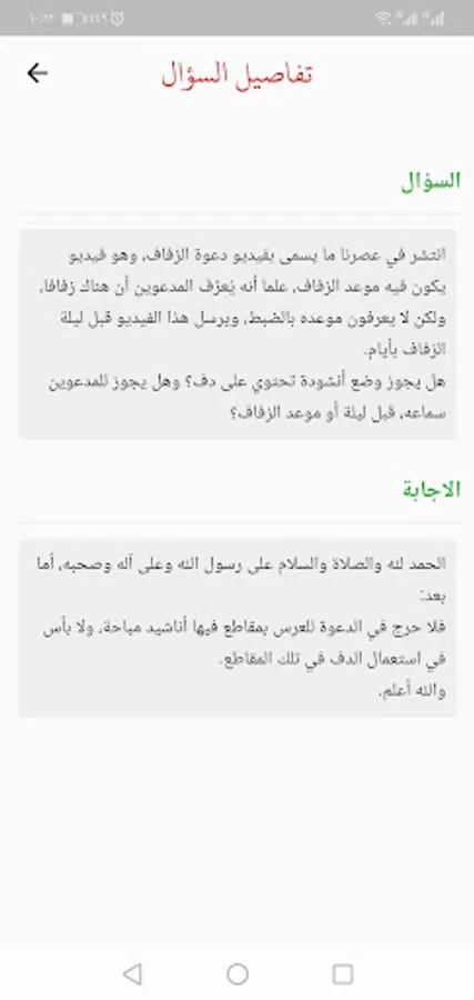 - Contains a list of legal fatwas related to Islamic weddings and Islamic songs