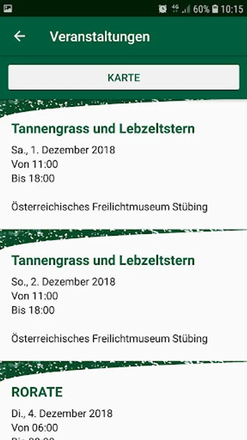Events and courses: clear presentation with information and navigation to singers and musicians' tables, singing, yodelling and music lessons u.v.m.