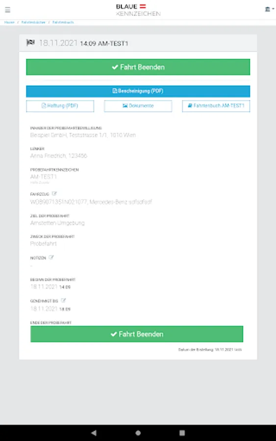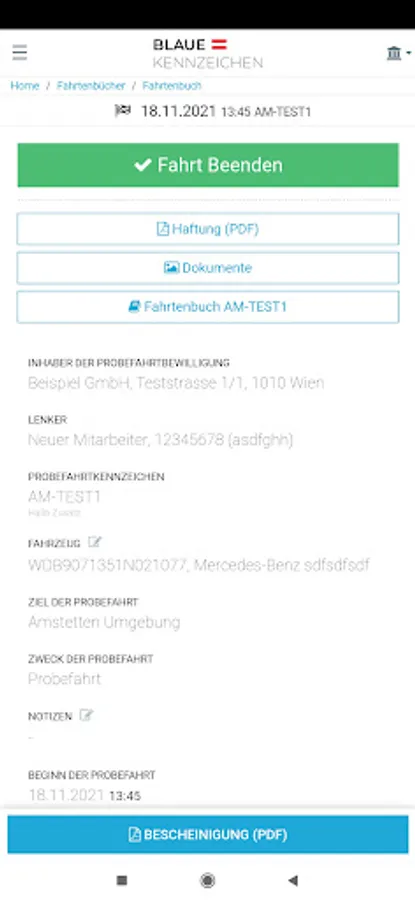 * Logbook and certificates correspond to Section 45 para. 6 KFG 1967