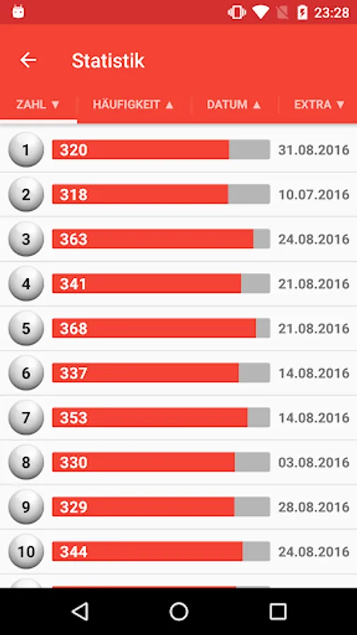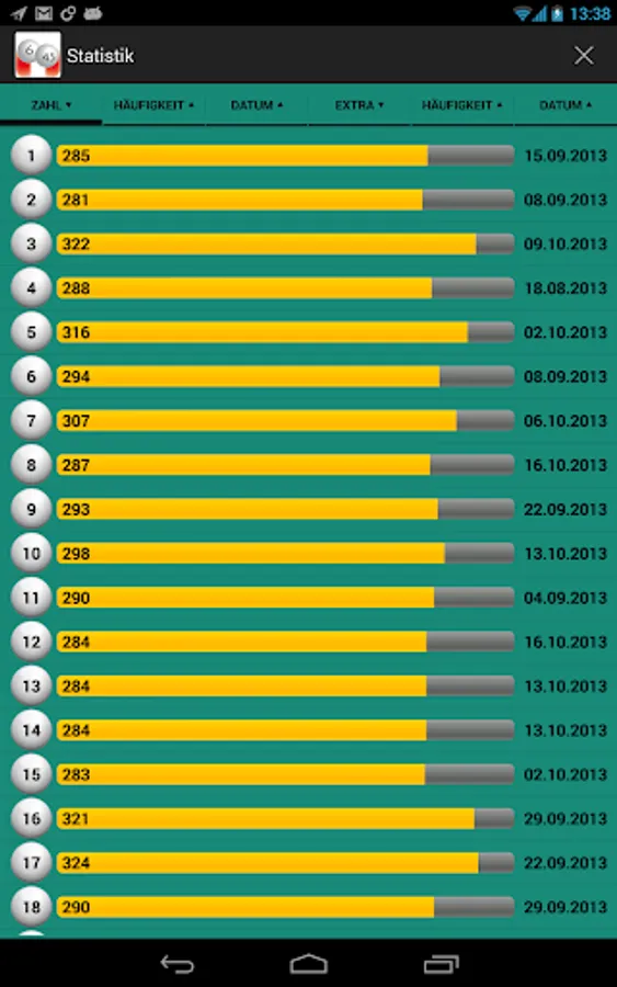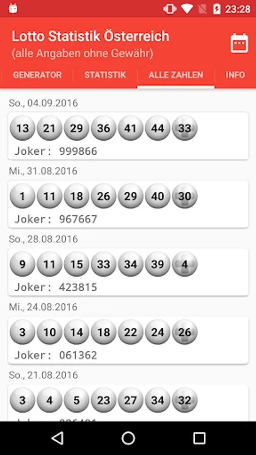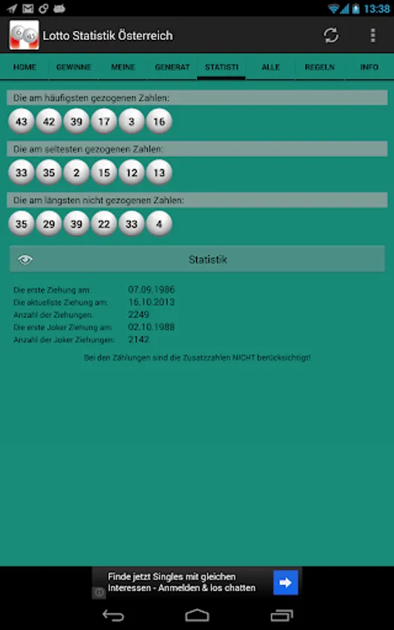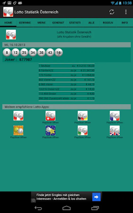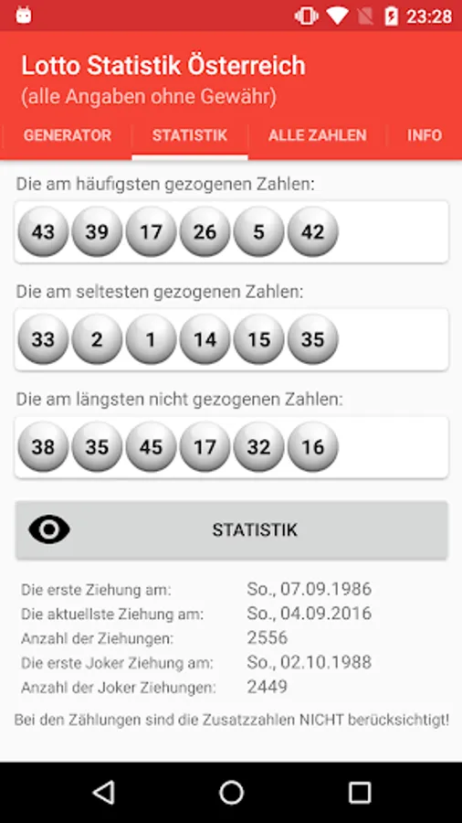 - Updating of the data a few minutes after the draw