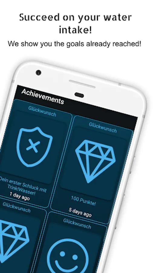 For further gamification we introduced a lot of achievemtents you can reach when you use Drink Water frequently. Some may be achieved in a very easy way, some will take more time and patience.