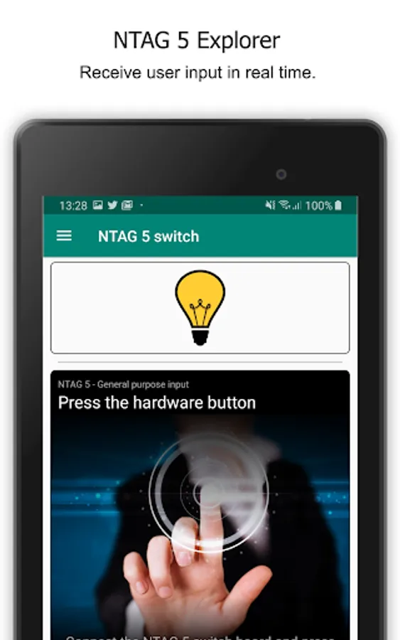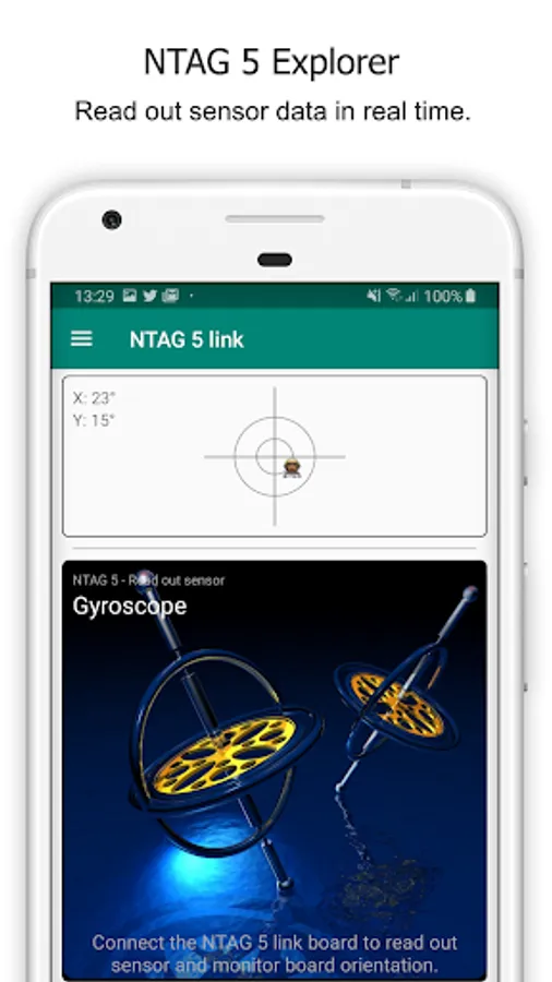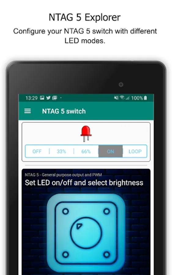 This App helps to understand the exclusive features of NTAG 5 family like regulated energy harvesting, GPIO, Pulse Width Modulation, I²C master and active load modulation