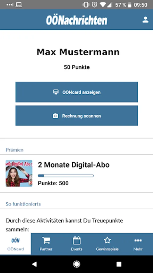 With the digital OÖNcard you can easily take advantage of over 300 OÖNcard partners. In addition, it is possible by scanning your invoices from OÖNcard partners to earn points after the purchase and to participate in exclusive sweepstakes.