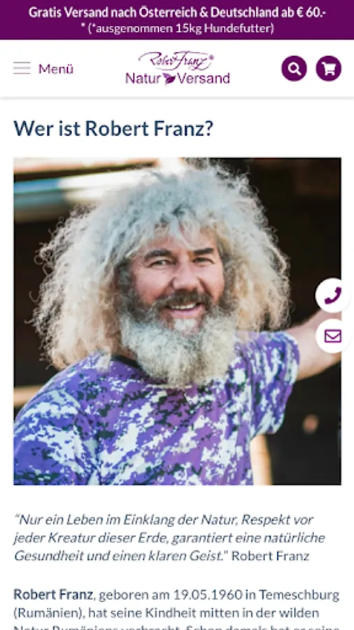 Official Robert Franz Natur-Versand app. Discover interesting facts about Robert Franz and his products.