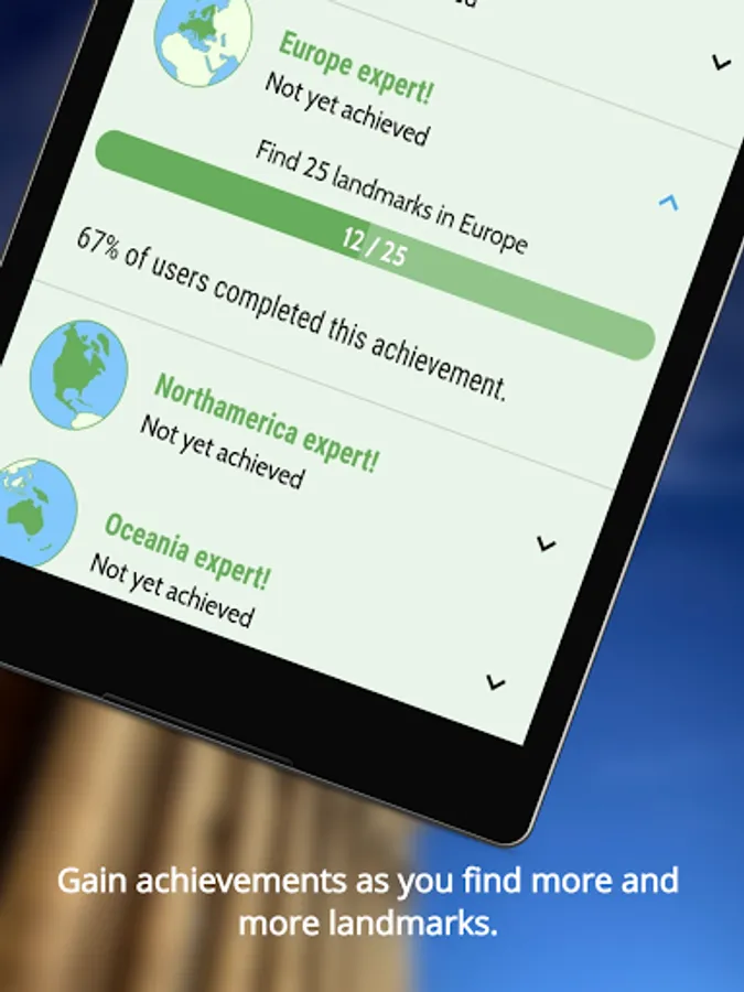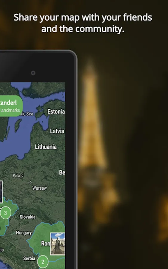 Visit all the countries, find all the landmarks and impress your friends as well as the community with your achievements.
