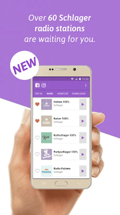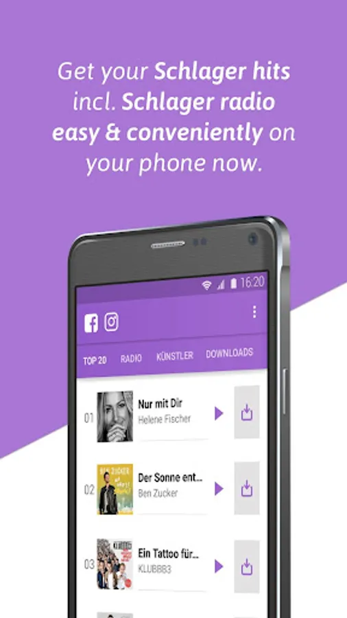 The Schlager Charts app accompanies you throughout the day and provides you regularly with new Schlager music hits. With the Schlager Charts app you can find German Schlager music for every taste and every mood.
