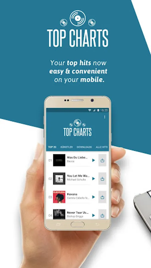 • Top 20, To20, Music Top Hits, Top Charts, Music Charts, Top Music Charts, Top Music, Music Search, Best Hits, Chart Songs, Chart Hits, Charts USA, Charts UK, German Hit Parade - all in one app