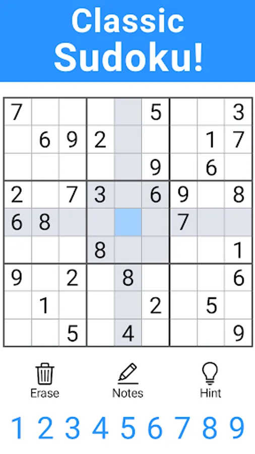 This classic Sudoku is suitable for beginners to experts. There are thousands of addictive Sudoku puzzles waiting for you. New puzzle games are added all the time to help you train your brain, take a short break or take your mind off your stressful everyday life.