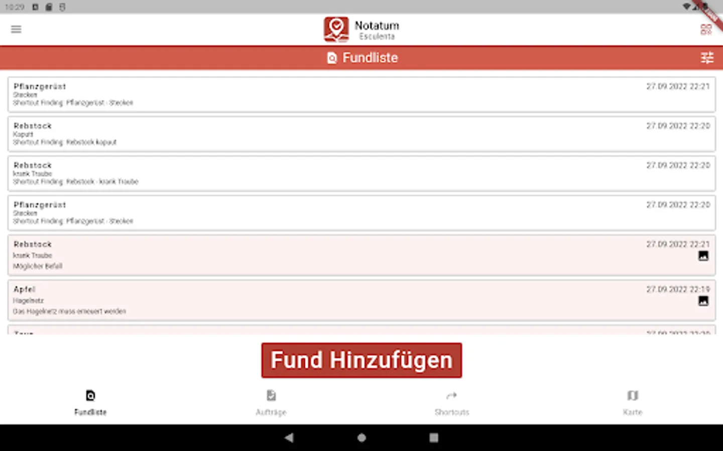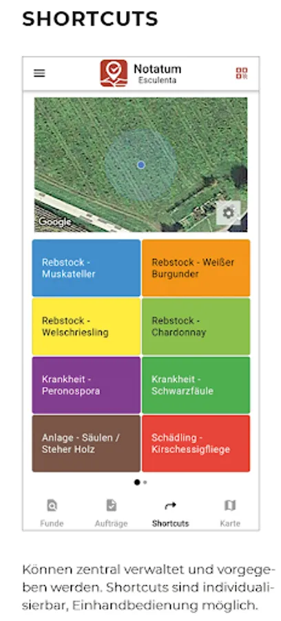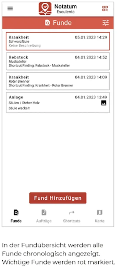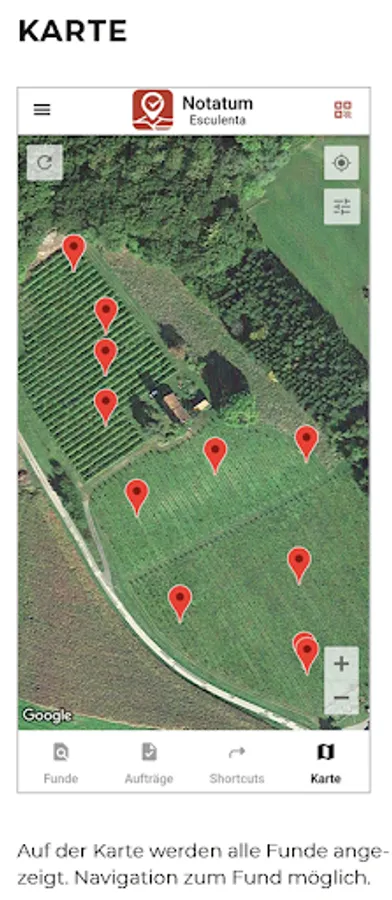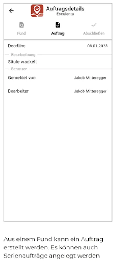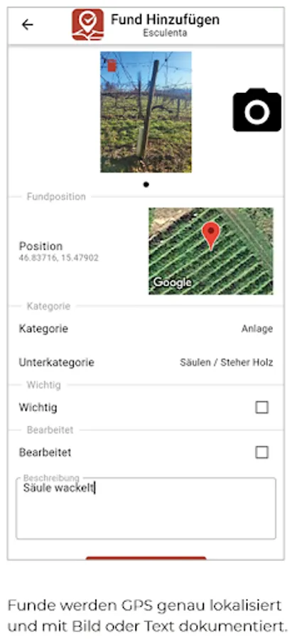 The find is saved with an image or text with GPS localization. Orders from the finds can be completed documented.