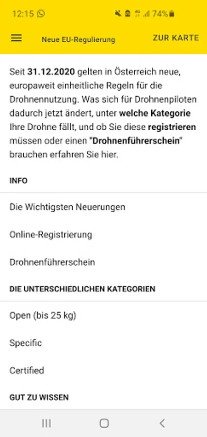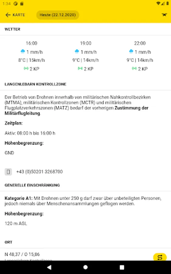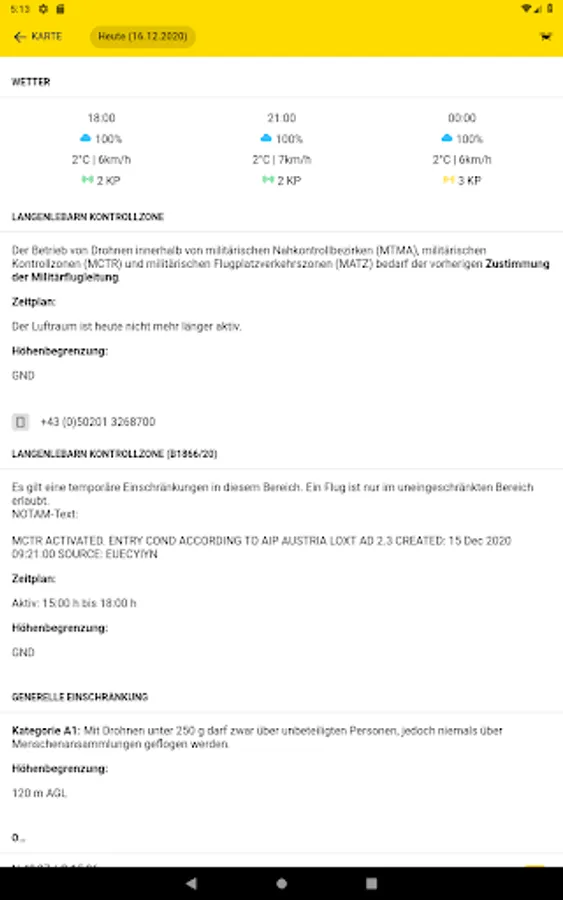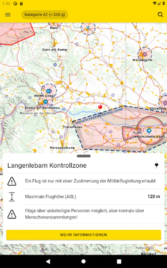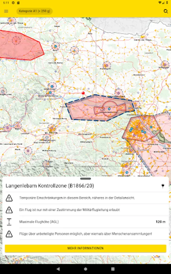 The app provides users with easy, comprehensive and reliable information on an interactive map for each location, in which areas drones can safely and legally ascend and where restrictions and bans exist.