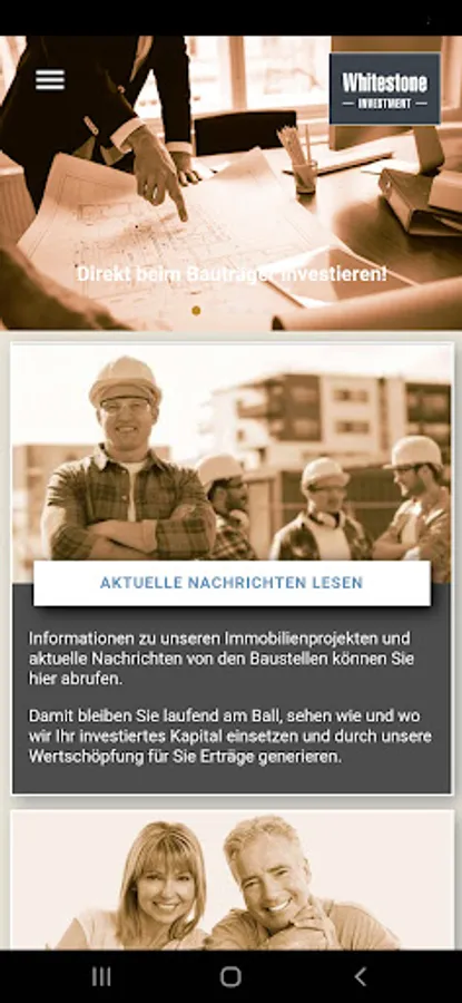 INVEST DIRECTLY WITH THE DEVELOPER! - Our Whitestone App gives you a direct connection to profitable investment products and current information about our real estate projects. Our APP users can invest money quickly and easily and get access to the online portal where the investments made are clearly displayed. With the Whitestone APP, you'll be the first to know when we're buying new land, planning a new project, paying out income to our investors, or successfully completing and selling a real estate project